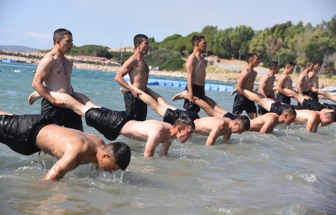 - Sızma ve güç engel parkurlarından geçiş eğitimleri, göğüs göğüse muharebe eğitimi ve deniz eğitimleri (temel yüzme ve savaş yüzme eğitimi, suda güç geliştirme eğitimi, bot devirme eğitimi) icra edilmektedir.
